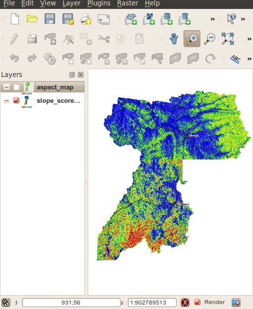 QGIS, using the GRASS plugin, was selected as it provided the tools needed to complete the job and the interaction between QGIS and GRASS made it easy to process the raster maps and present them in a meaningful way to users. SDRC uses MapInfo for its main GIS system, however MapInfo’s addons were not as powerful as GRASS GIS for raster processing.