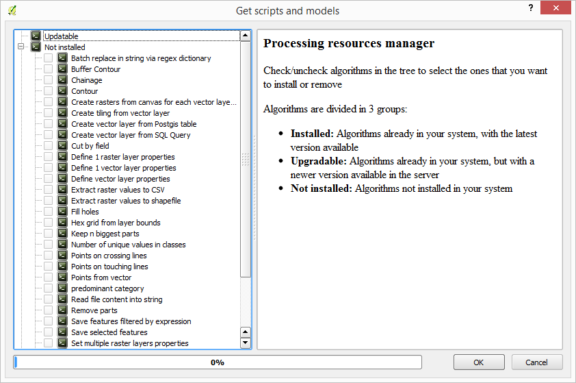 Models and scripts can be downloaded from the online collection and installed directly from the Processing interface. The collection will be expanded with new scripts and models provided by Processing users.