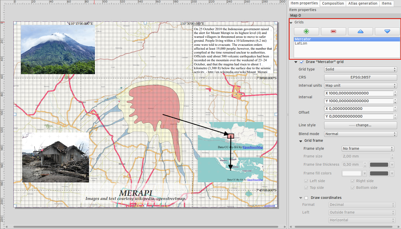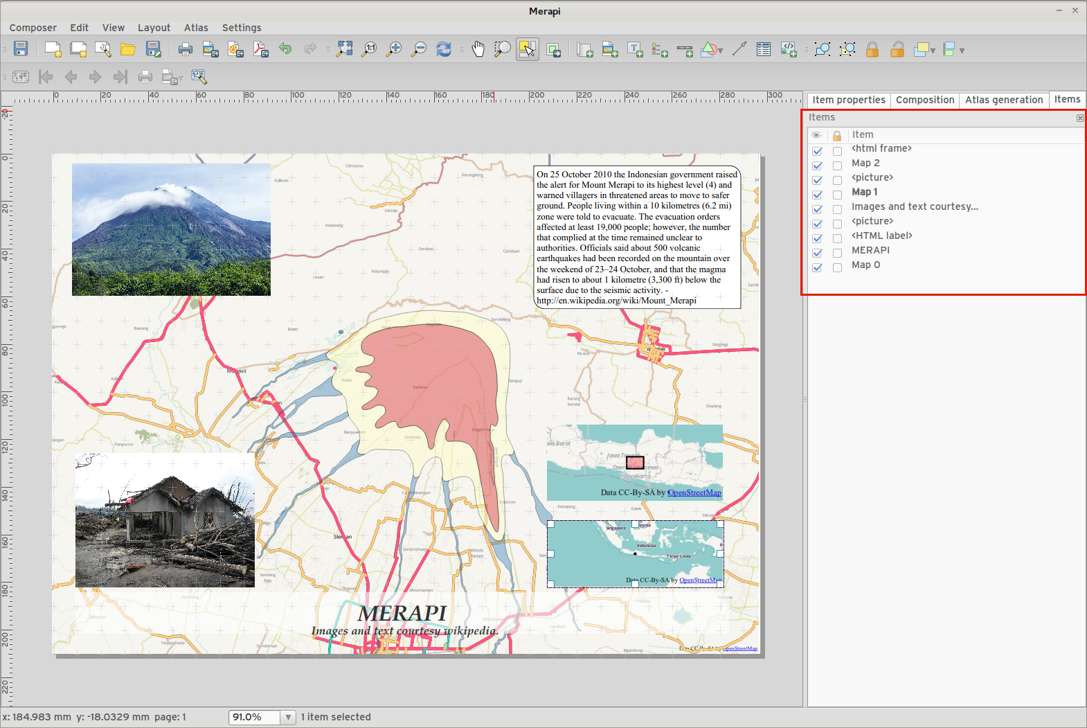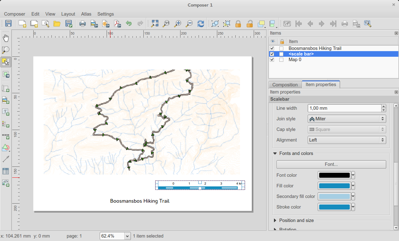 The map composer (used to prepare printable map compositions) has received a number of improvements in QGIS 2.6.