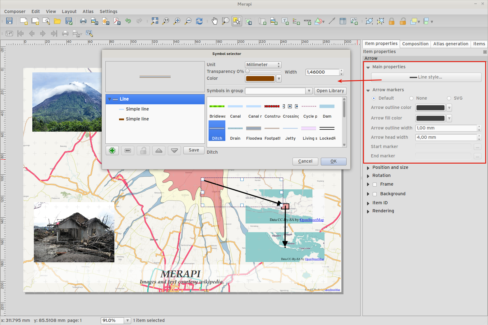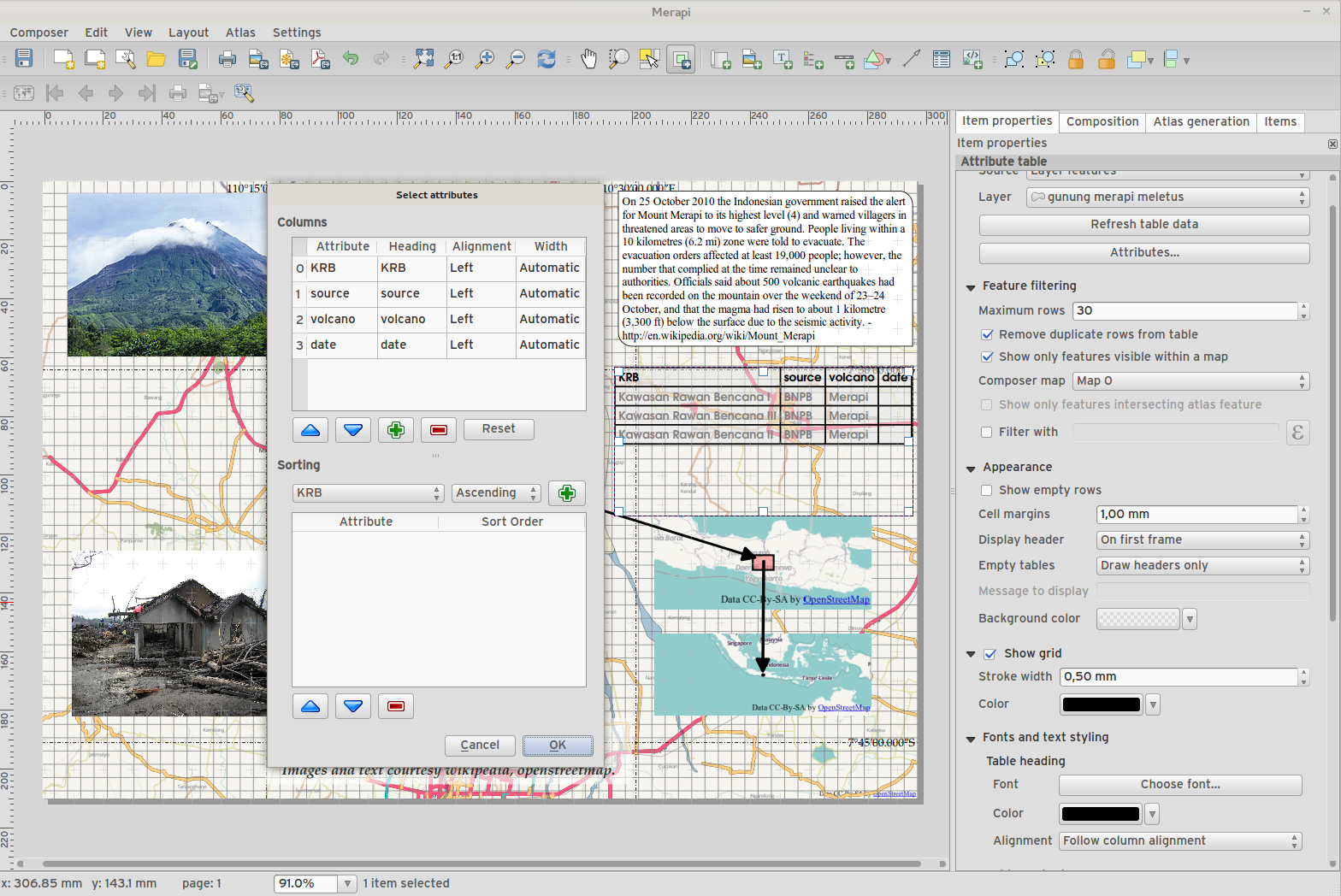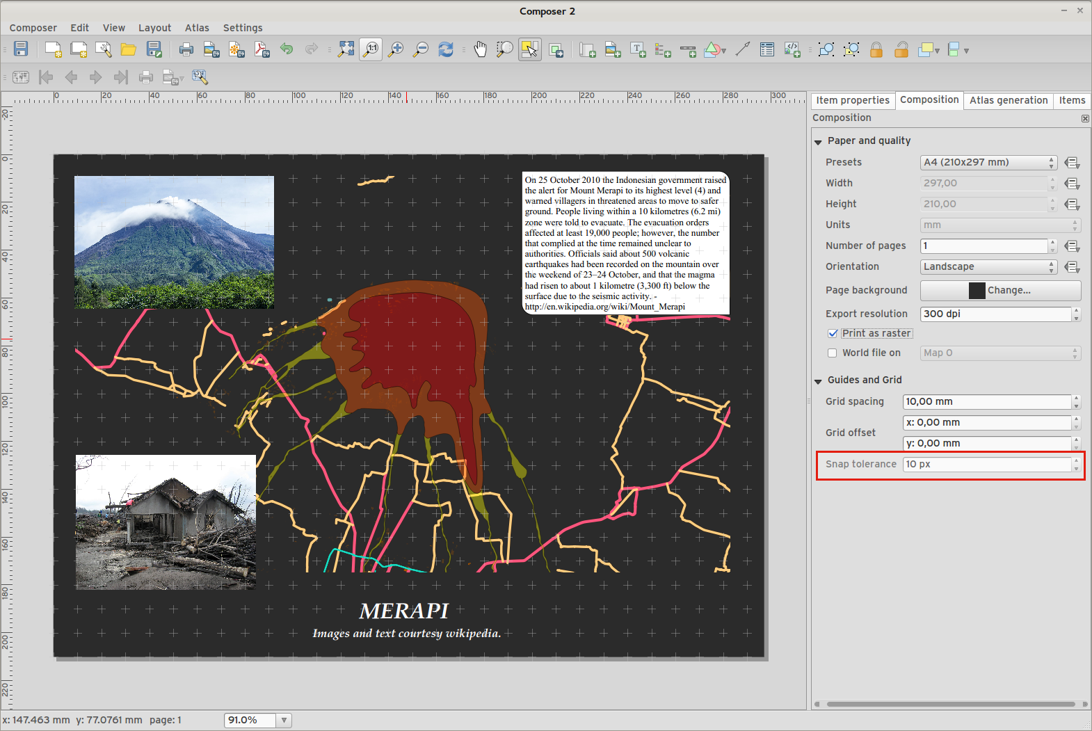 The map composer (used to prepare printable map compositions) has received a number of improvements in QGIS 2.6.