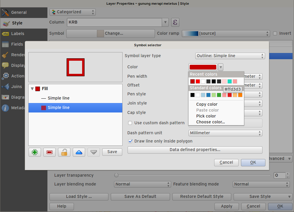 • Where possible, properties of symbol layer are maintained when changing symbol layer type.