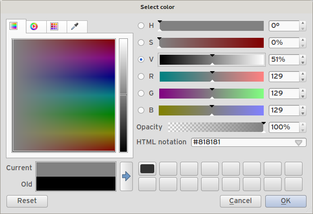 • Sliders for hue, saturation, value, red, green, blue color components.