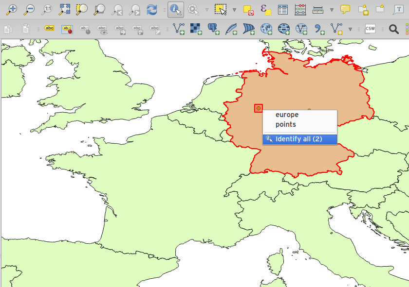 When using the identify tool, you can now right click on the canvas to use the identify tool in context mode. In the menu that appears you can define which feature types you wish to identify (all all if you like).