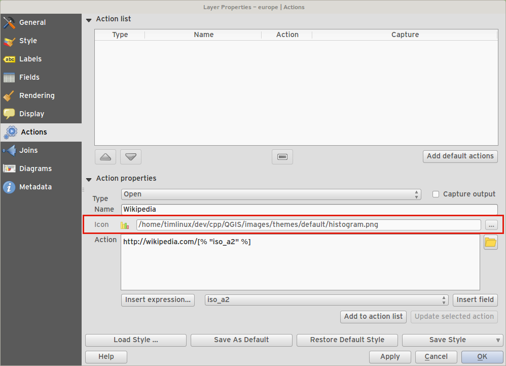 When creating a custom action for a vector layer, you can now define an icon to be used for the action too.