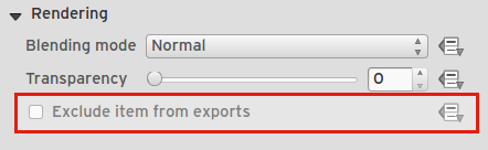 We have added a checkbox and data defined button for controlling whether an item is excluded from composer exports/printouts. If the item is unchecked it will be visible at composition design time only.