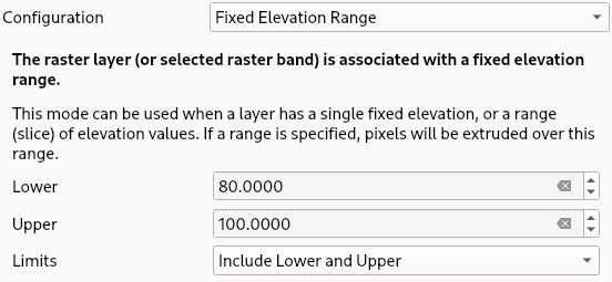 Users can set the lower and upper elevation range for the layer, and whether the lower or upper limits are inclusive or exclusive.