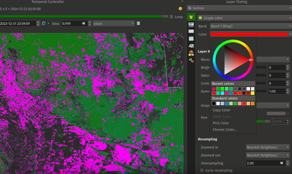 A new single-color symbology has been added for raster layers. This allows for a super simple and friendly way to render a raster using a single color.