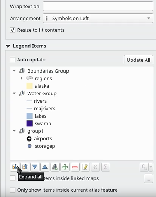 New buttons have been added to allow users to easily expand or collapse the legend trees within print layouts.