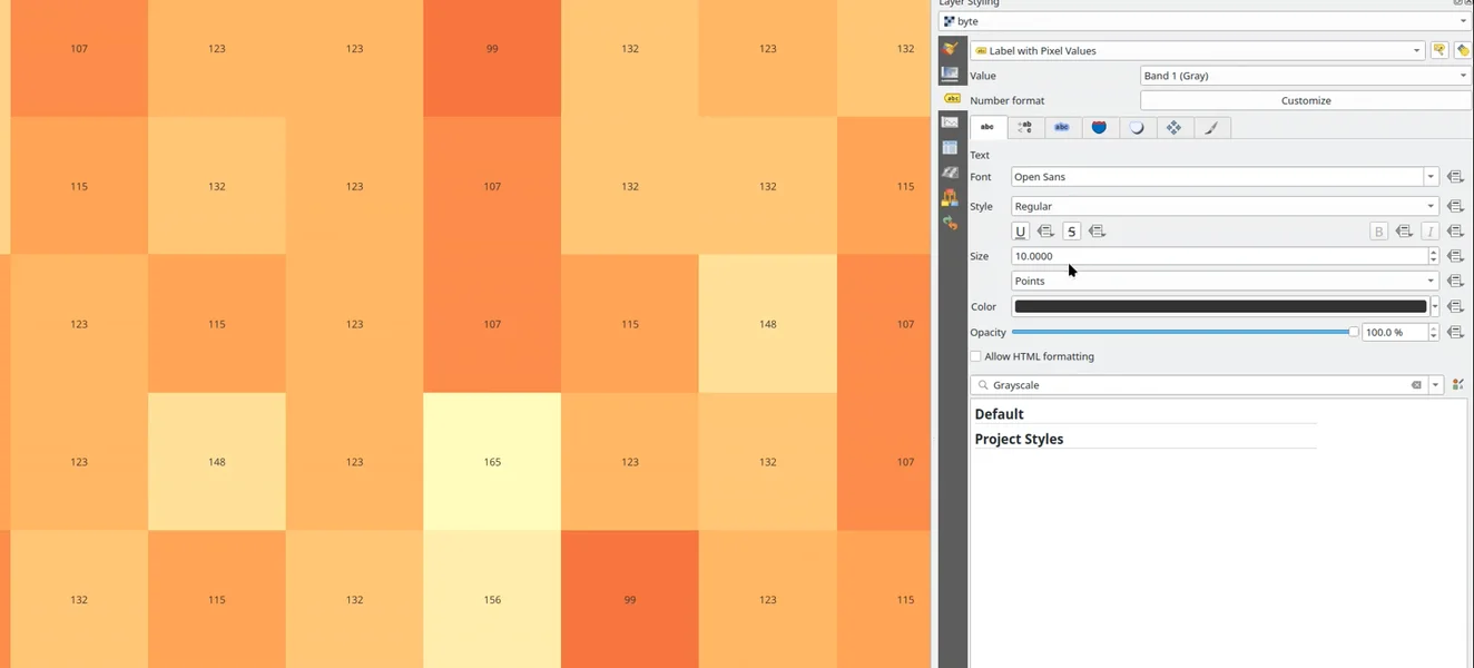 QGIS now allows raster pixels to be labeled with the value taken from a raster band. Labels are registered with the labeling engine, and so will participate in label conflict resolution and overlap avoidance. Options include:
